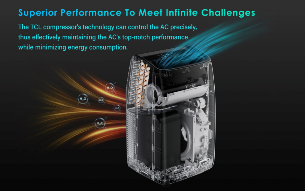 Освен стандартните режими за охлаждане и отопление, уредът разполага с функции за овлажняване на въздуха, режим вентилатор за циркулация без охлаждане, както и специален нощен режим за по-тиха работа и плавна промяна на температурата. Иновативната технология без оттичане елиминира нуждата от маркуч за отвеждане на кондензата, което прави използването му още по-удобно и гъвкаво.